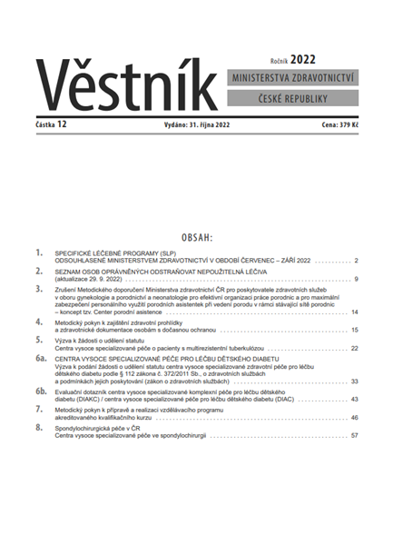 Další parametry Věstník Min.zdravotnictví 2022/012