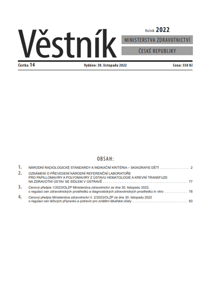 Další parametry Věstník Min.zdravotnictví 2022/014